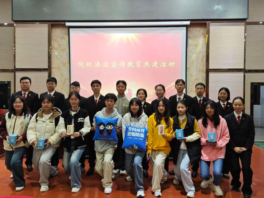 10月29日晚,为筑牢青年学生法律意识,增强青年学生法治素养,拓宽学生法治教育实践路径,我校学生工作处联合九江市濂溪区人民法院在香远楼报告厅举办院校法治宣传教育共建活动。我校文学院等十个二级学院的学工干部,濂溪区人民法院员额法官、法官助理以及学生代表共300余人参与本次活动。