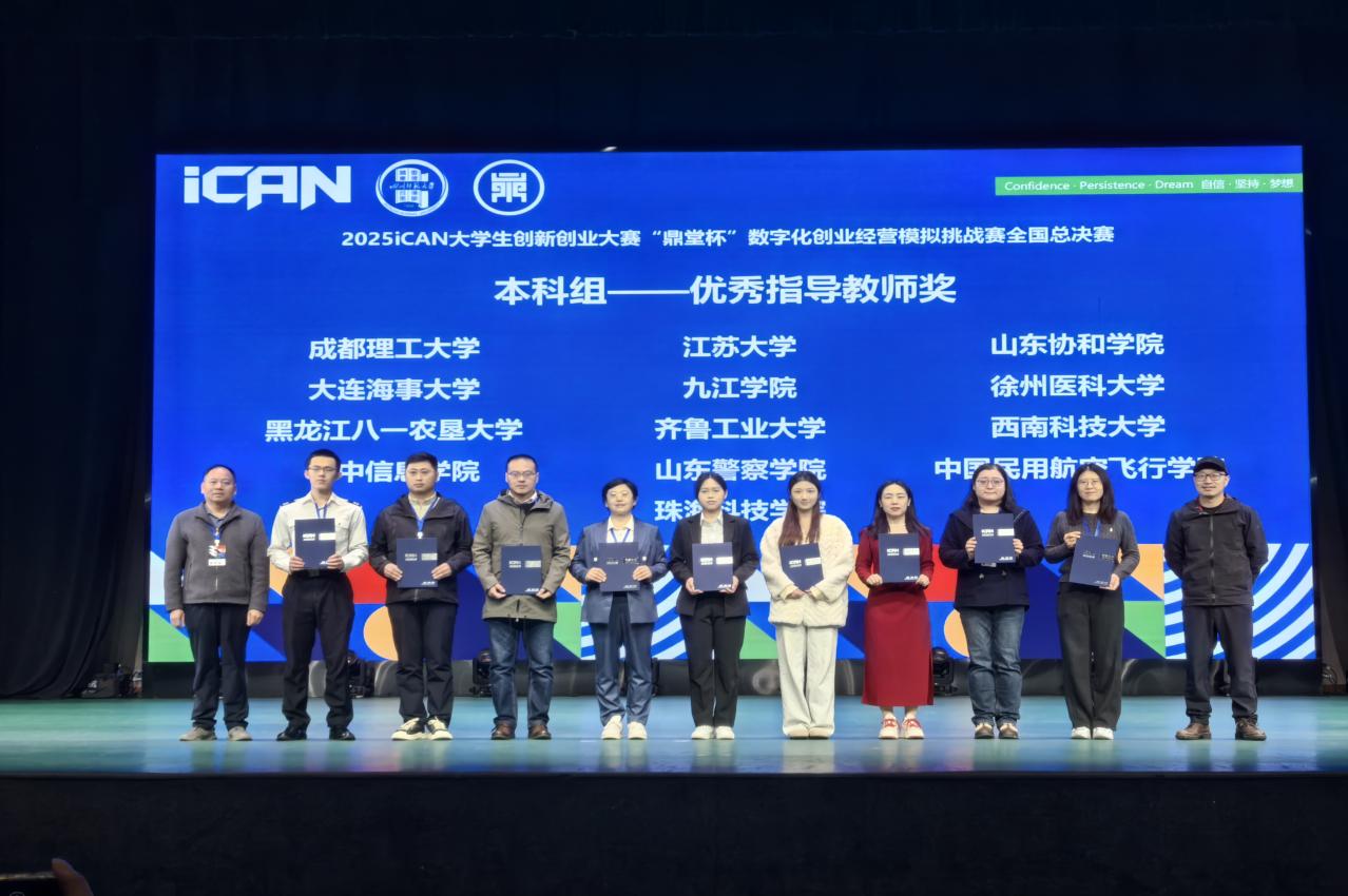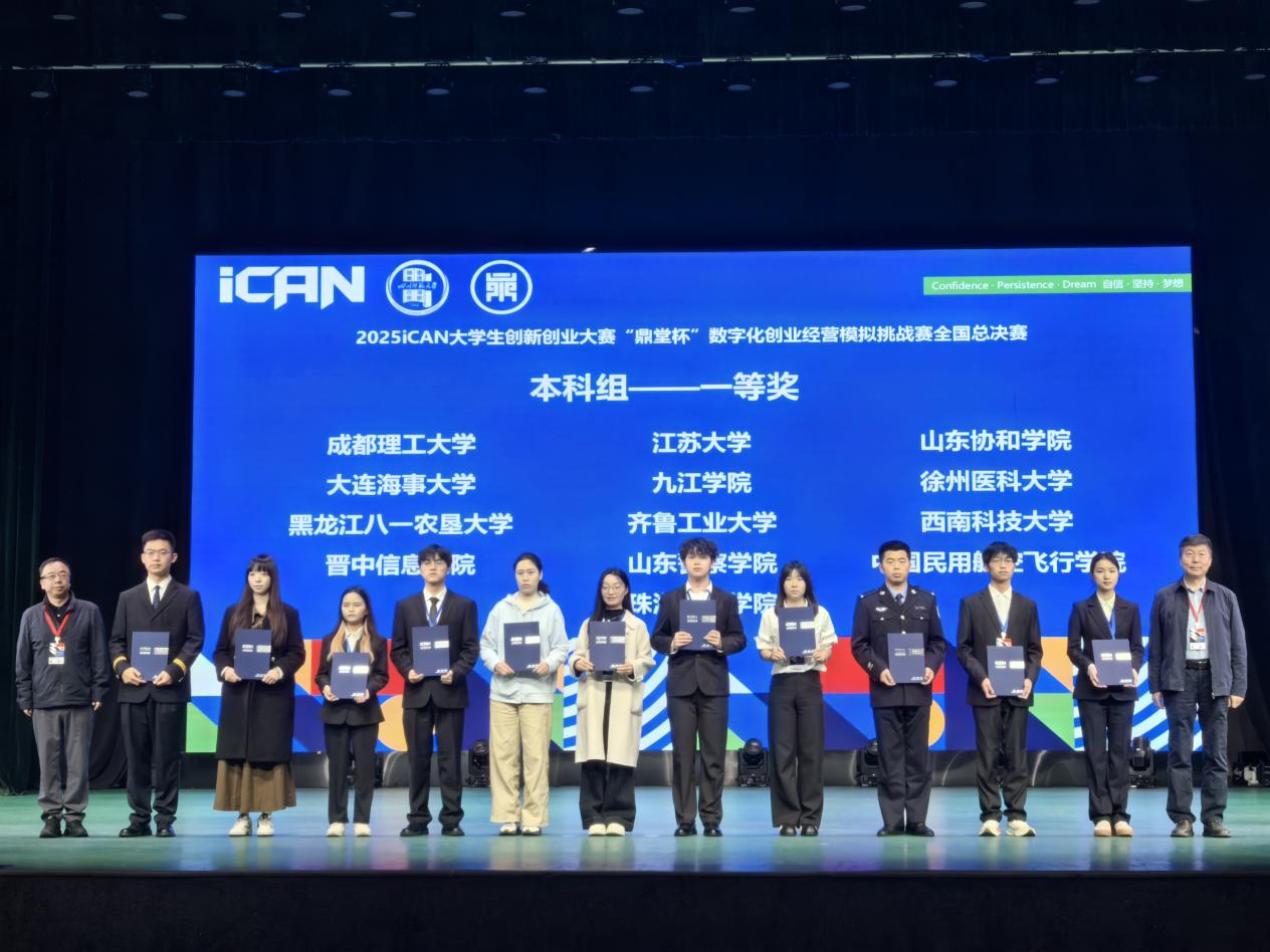 2025年11月8日,2025年iCAN 大学生创新创业大赛“鼎堂杯”数字化创业经营模拟挑战赛全国总决赛在四川师范大学圆满落幕。我校经济学院顾艳辉教师指导的参赛团队(队长:王硕辉;成员:邓焱文、刘欣蕾)凭借硬核技术实力与扎实落地成果,从全国379余所高校、2万余名参赛者中脱颖而出,斩获全国一等奖,彰显了我校创新创业教育的丰硕成果与青年学子的创新活力。