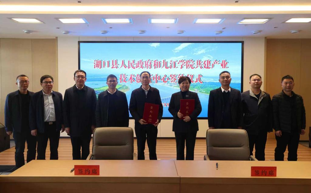 11 月 25 日,九江学院、天津大学合肥创新发展研究院、江西师范大学与湖口县人民政府共建产业技术创新中心签约仪式在湖口县工业大厦举行。校党委委员、副校长王殿元代表学校出席仪式,湖口县委常委、组织部部长王利军主持签约活动。