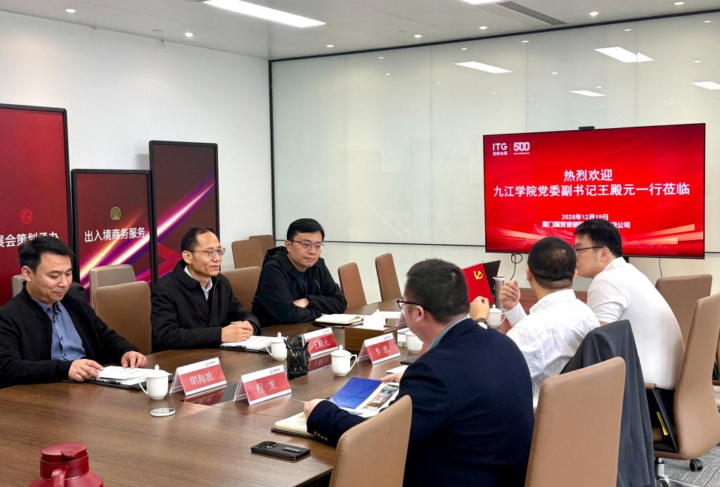 此外,王殿元一行走访了厦门国贸誉颁国际会展有限公司(简称“国贸会展”),深入了解厦门地区人才需求现状与相关政策,并就推动产教融合、加强人才联合培养、深化就业服务合作等方面进行了深入交流。