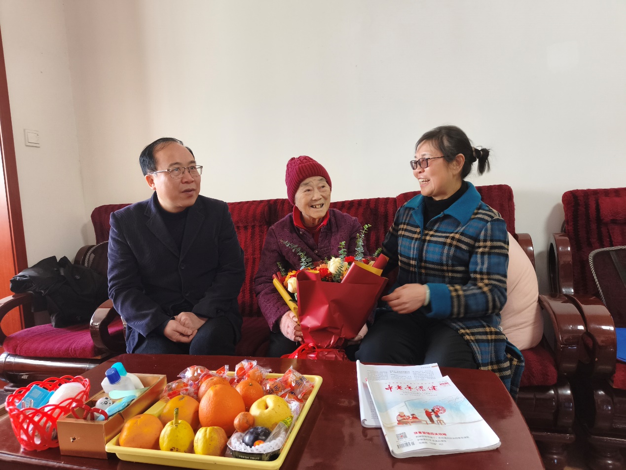 阳春三月,暖意融融。近日,我校103岁高龄的退休老党员黄绍容老师迎来寿辰。受学校委托,离退休人员工作处负责人专程登门看望这位我校最年长的退休老同志,代表学校党委和全体师生送上慰问品与生日祝福。