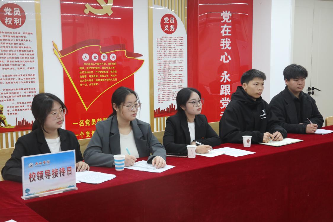 为进一步畅通师生沟通交流渠道,精准对接学生需求,切实解决学生在学习生活中遇到的实际困难,不断提升校园服务保障水平,3月19日下午,九江学院“校领导接待日”在紫薇园五栋党团活动室顺利开展。党委委员、副校长鲁卫东深入学生社区,与学子面对面交流、心贴心沟通,现场倾听诉求、答疑解惑、部署落实。党政办、学工处、资产处、保卫处、后勤处、图书馆、信息中心及相关二级学院负责人参加了活动。