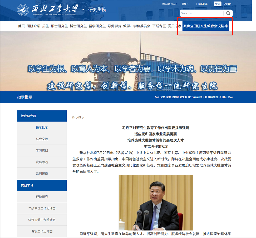 为贯彻落实全国研究生教育会议精神,营造全校范围内贯彻落实会议精神的浓厚氛围。根据学校工作安排,现已在学校主页及研究生院官网开设了“聚焦全国研究生教育会议精神”专题专栏。