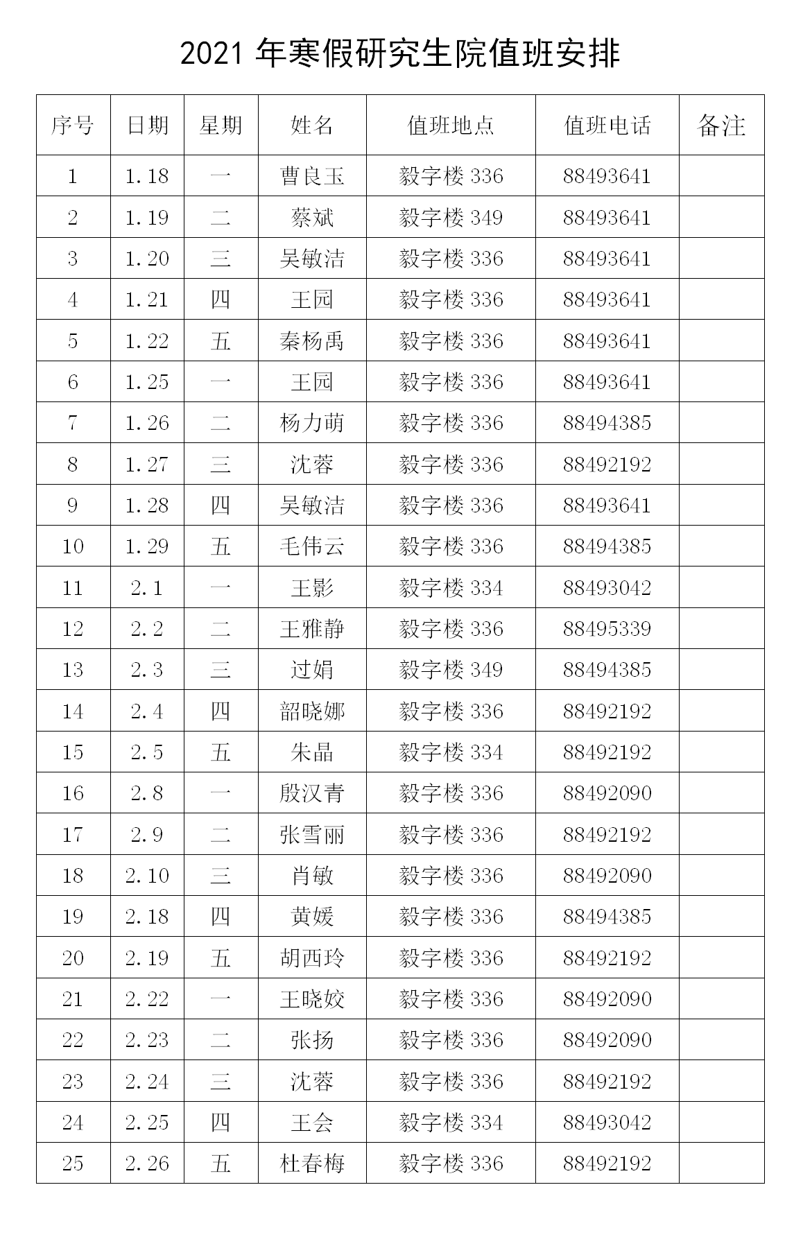 根据学校疫情防控有关要求,保证暑假期间全校师生可以办理研究生相关业务,现将研究生院值班安排通知如下: