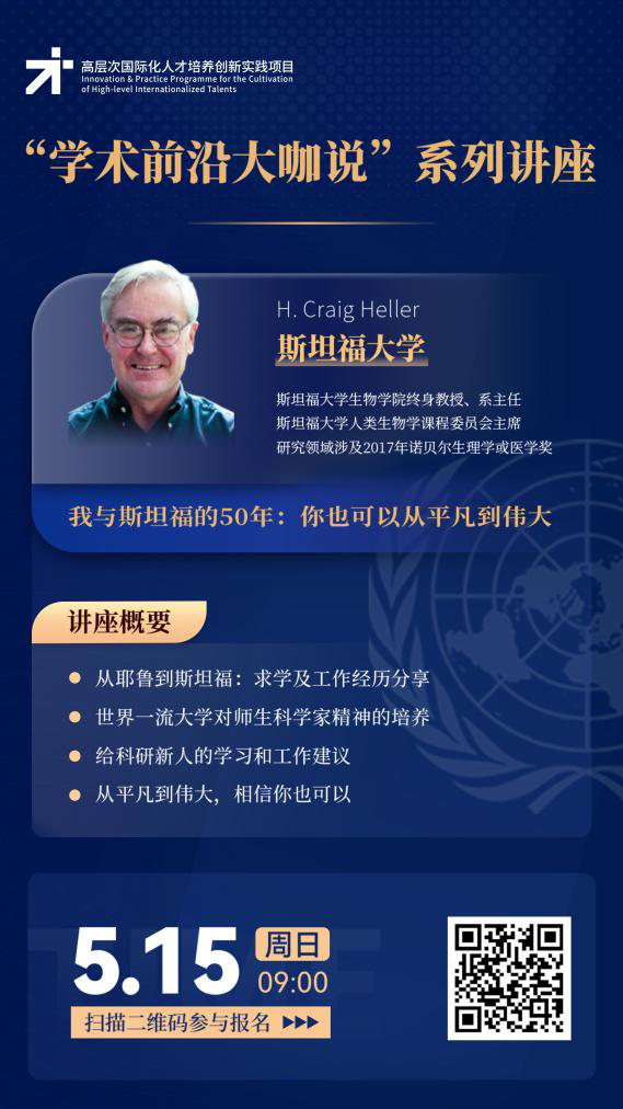 三、主讲人:H. Craig Heller,斯坦福大学生物学院终身教授、系主任;斯坦福大学人类生物学课程委员会主席;研究领域涉及2017年诺贝尔生理学或医学奖。