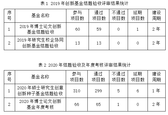 根据《西北工业大学研究生创新基金管理办法(2018修订版)》,由研究生院及学院组织了2019年、2020年度研究生创新基金结题验收及年度考核相关工作,包括:2019年博士论文创新基金结题验收、2019年度研究生校企协同创新基金结题验收、2020年硕士研究生创意创新种子基金结题验收、2020年博士论文创新基金年度考核。经学院评审,研究生院复核,本次结题验收及年度考核结果数据统计如下: