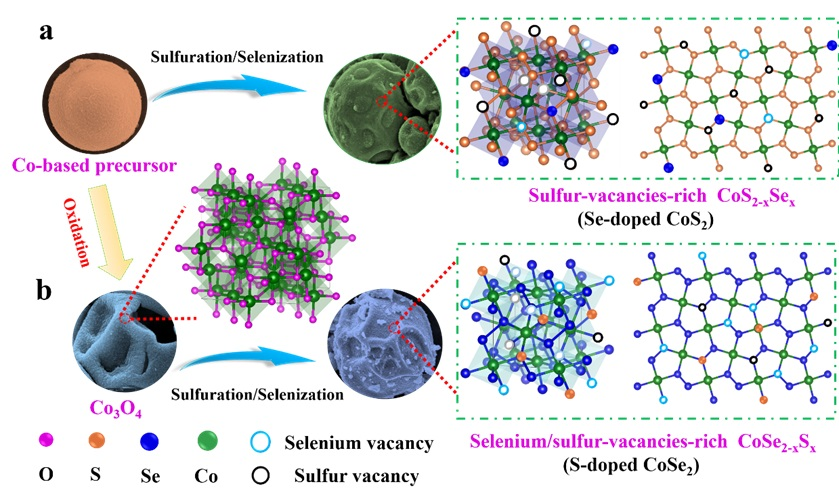 图4 具有丰富空位水平的选择性阴离子掺杂硫硒化钴的制备示意图