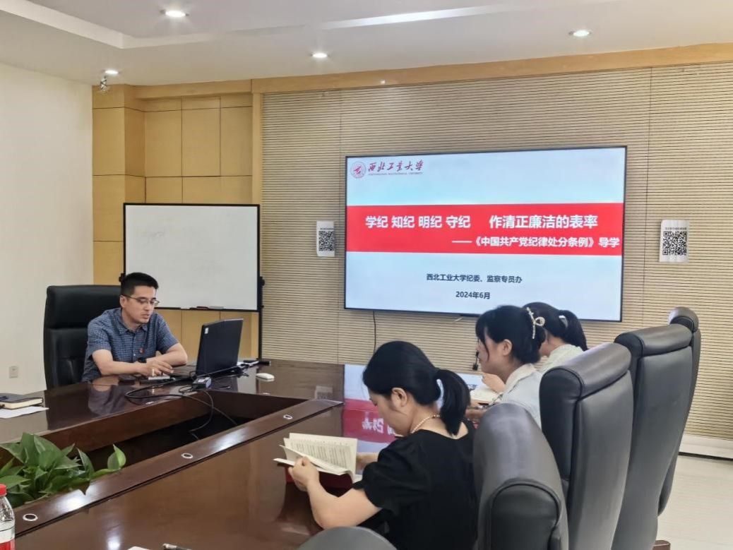 6月27日下午,研究生院党支部在毅字楼218会议室召开党纪学习教育专题党课,邀请第一纪检监察室主任林欢欢作专题党课,党支部全体党员参加会议,会议由党支部副书记李圣主持。