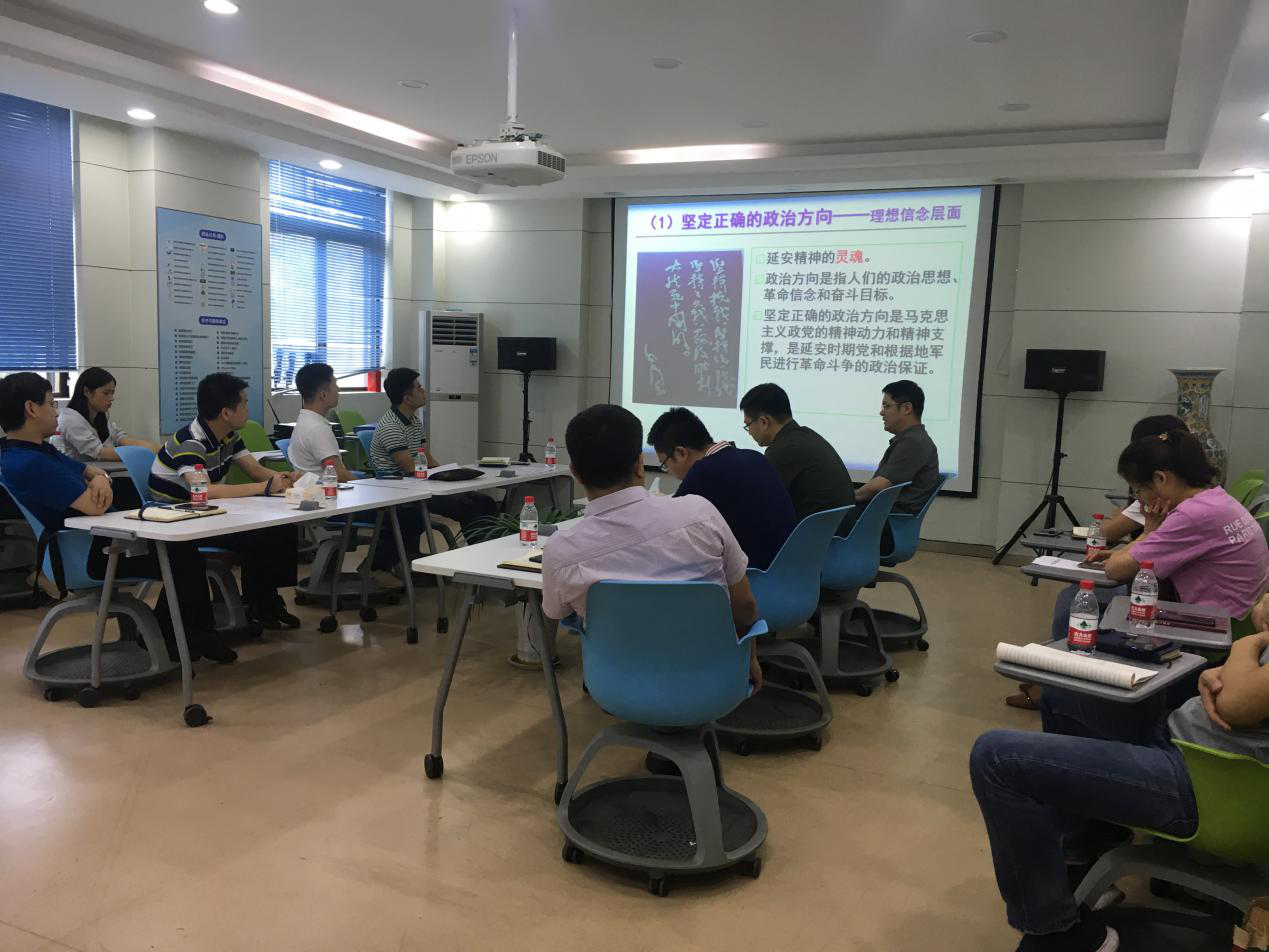 会上,殷小玮书记为大家讲授了“学习延安精神”专题党课。他从延安精神的形成出发,介绍了延安精神概念的出现历程、形态特点和本质、延安精神形成的历史基础和条件等,并从理想信念、科学理性、伦理价值和实践意志层面深刻剖析了延安精神的内涵,指出延安精神的本质和核心是全心全意为人民服务的精神,精髓是解放思想、实事求是、讲求实效的实践精神,各位党员干部要深刻理解延安精神的时代内涵和具体体现。