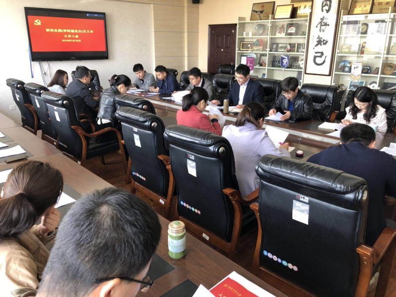 3月28日上午,研究生院(学科办)党支部在毅字楼732召开支部大会,会议由支部书记殷小玮主持,全体党员参加会议。